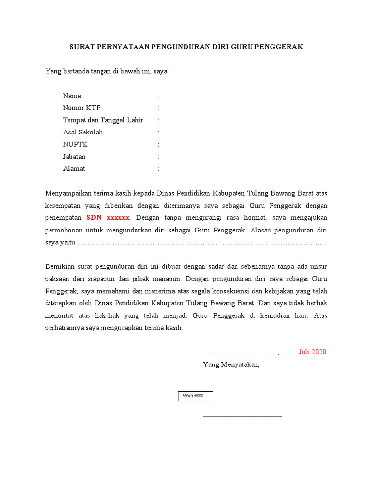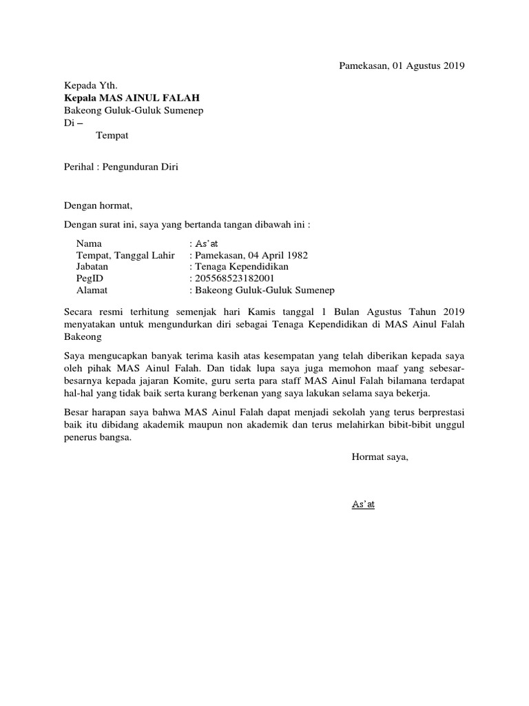 Surat Pengunduran Diri Guru Yang Baik Dan Benar