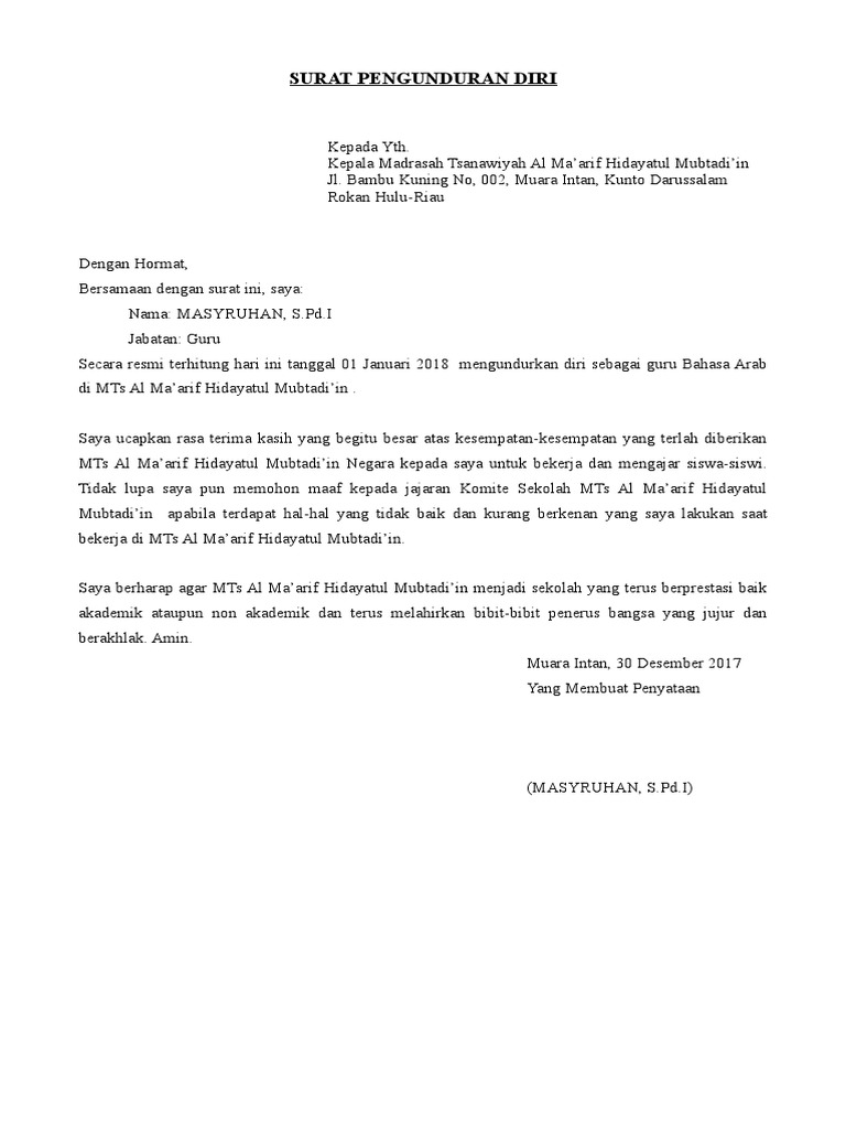 Contoh Format Surat Pengunduran Diri Sebagai Guru Kumpulan Contoh Surat Dan Soal Terlengkap
