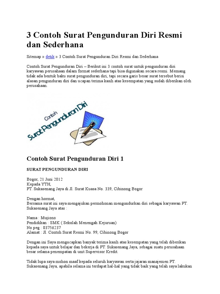 Aneka Contoh Surat Pengunduran Diri Portal Ilmu Com