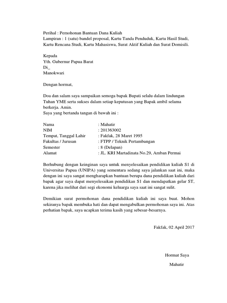 Contoh Surat Permohonan Bantuan Dana Pendidikan Doc