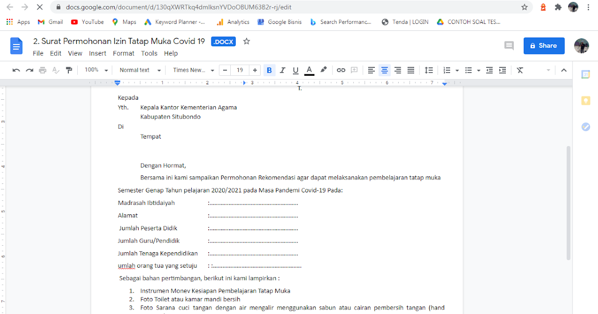 Contoh Surat Permohonan Izin Pembelajaran Tatap Muka Di Sekolah Antapedia Com
