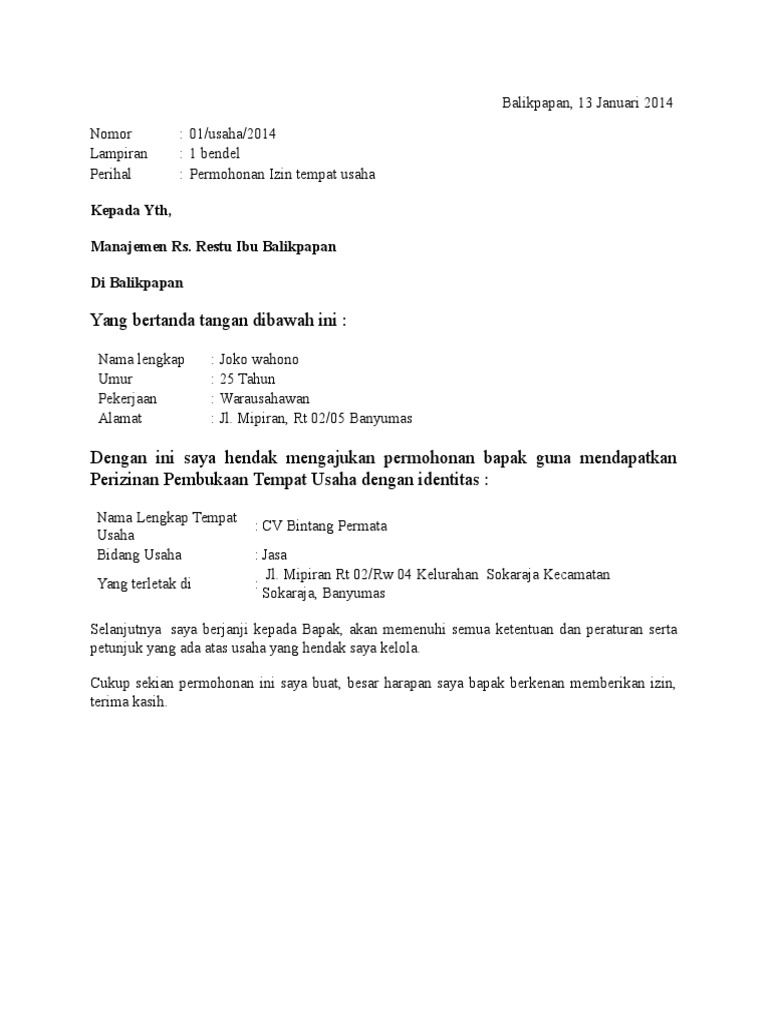 Contoh Permohonan Siup Dki Jakarta Jasa Izin Usaha Nib 2021