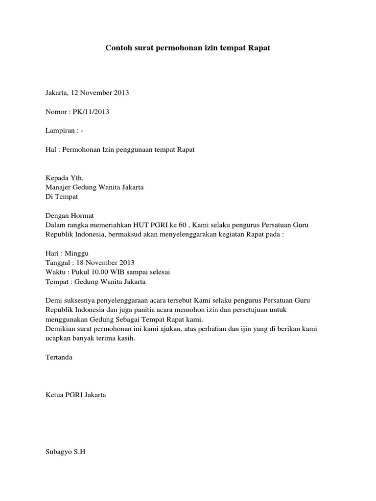 Detail 20 Contoh Surat Permohonan Izin Penggunaan Tempat Untuk Kegiatan