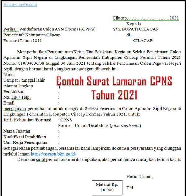 Surat Lamaran Cpns 2021 Sinau Thewe Com