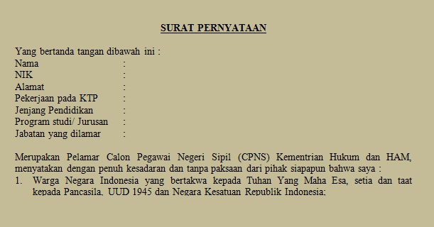 Contoh Surat Pernyataan Cpns Kementerian Hukum Dan Ham Tahun 2017 Rekrutmen Lowongan Kerja Cpns Bumn Bulan November 2021