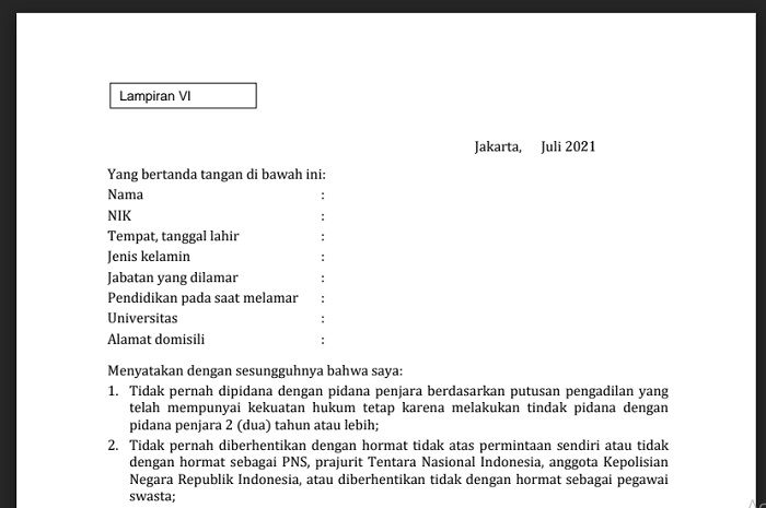 Kumpulan Link Download Contoh Surat Pernyataan Cpns 2021 Dan Formatnya Kitalulus