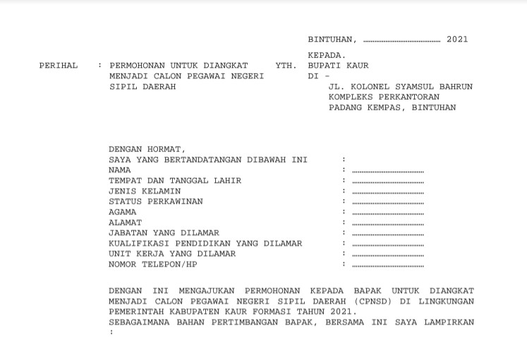 Download Surat Lamaran Dan Surat Pernyataan Cpns Pppk Kabupaten Kaur Format Word Tahun 2021 Guru Penyemangat