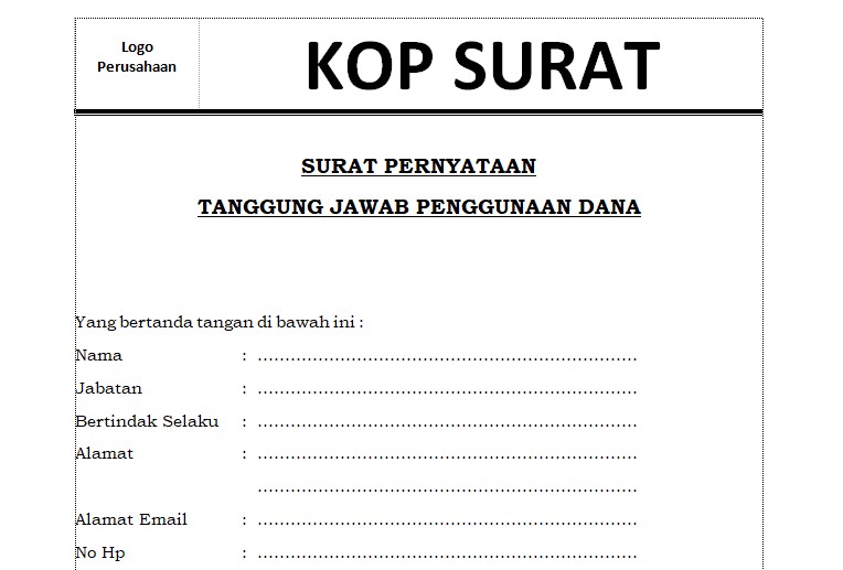 Contoh Surat Pertanggungjawaban