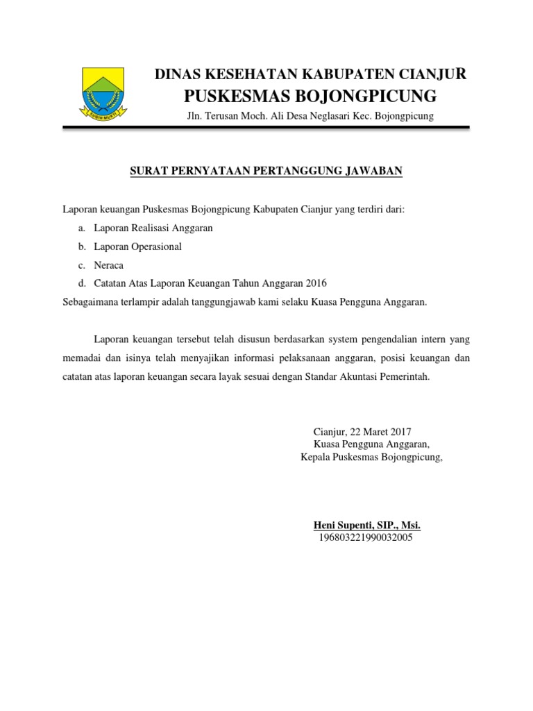 Surat Pernyataan Pertanggungjawaban