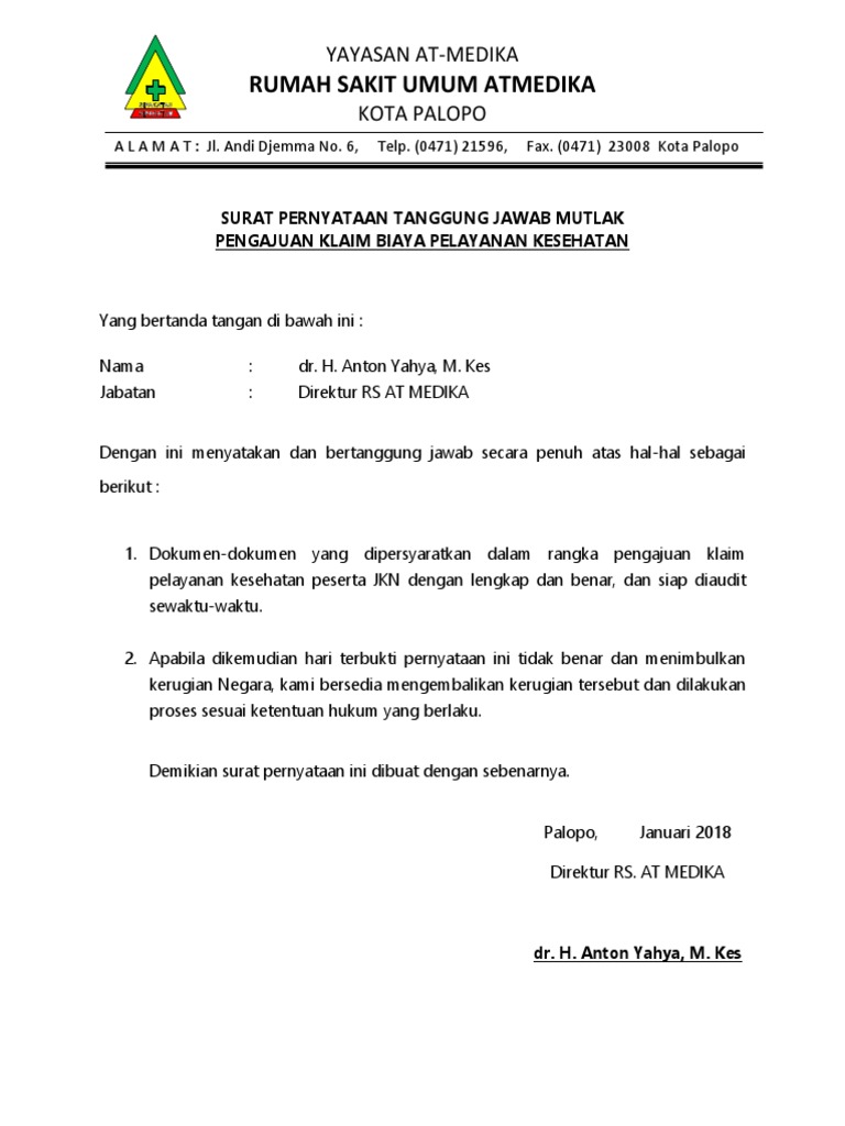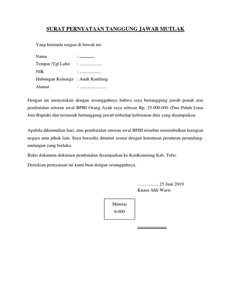 Contoh Surat Pernyataan Tanggung Jawab Mutlak Belajar Office