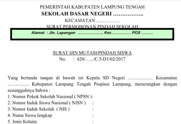 Contoh Surat Pindah Sekolah Terbaru Smp Mts