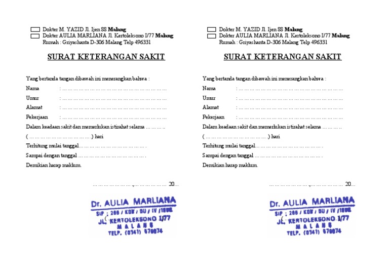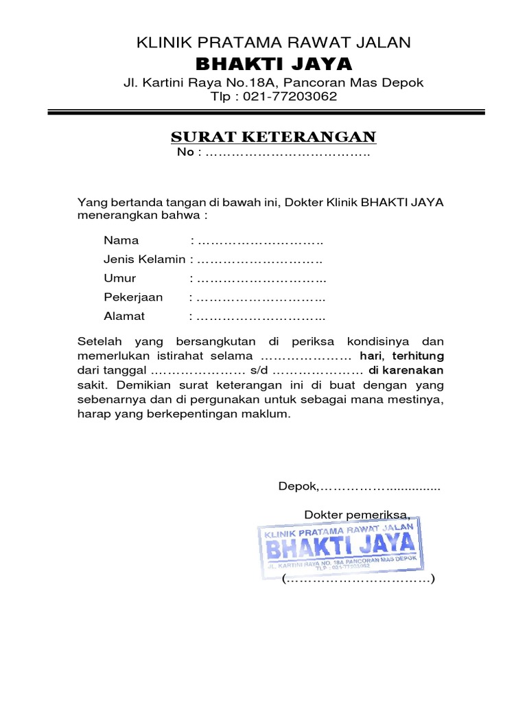 Contoh Surat Keterangan Sakit Dari Dokter Kosong Muda Mudi Condrowangsan