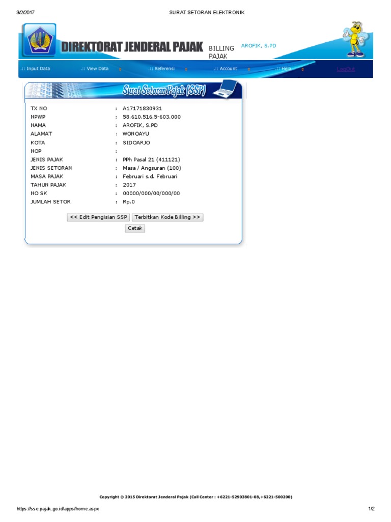 Cara Cetak E Billing Surat Setoran Elektronik Pajak Terbaru 2019