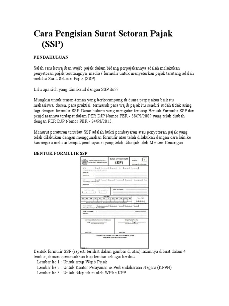 Ssp Pajak Cara Mengisi Surat Setoran Pajak