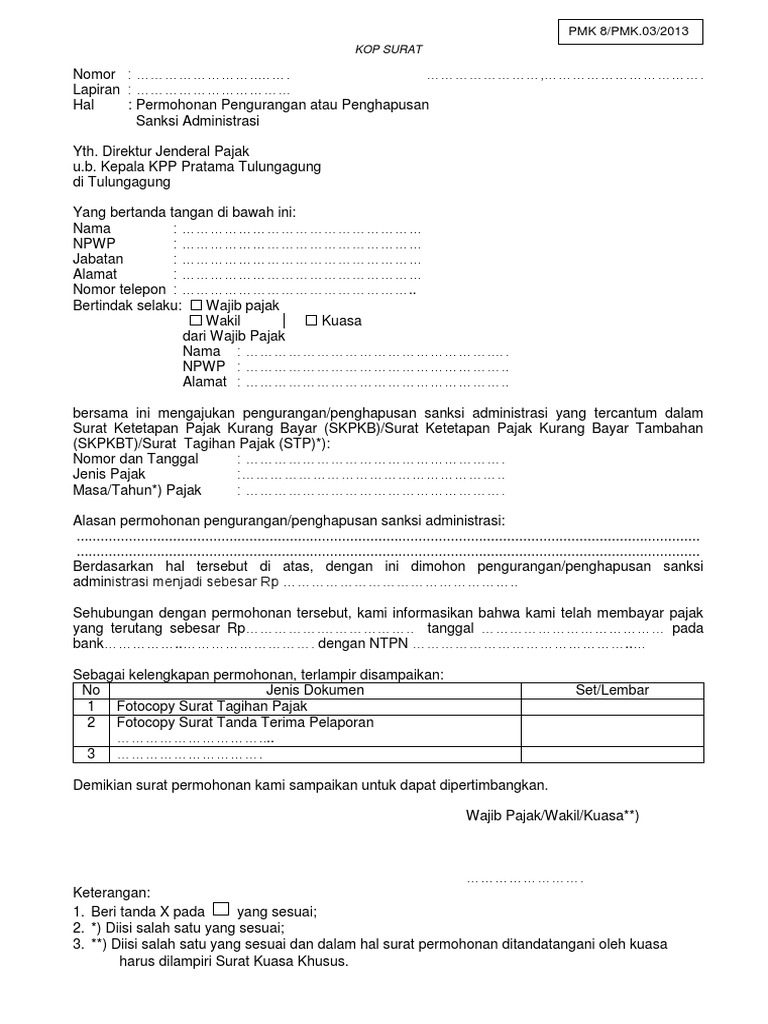 I No Jenis Dokumen D Wajib Pajak D Wakil D Kuasa 20 1 3 Permohonan Penghapusan Sanksi Administrasi Nomor Lampiran Hal Pdf Download Gratis