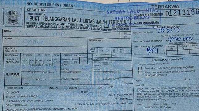 Terkena Tilang Begini Pengurusan Slip Tilang Biru Saat Telat Sidang
