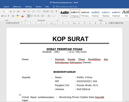 Cara Membuat Surat Tugas Guru Dan Surat Tugas Dinas Dengan Microsoft Word Hirojuara Websitenya Sang Juara