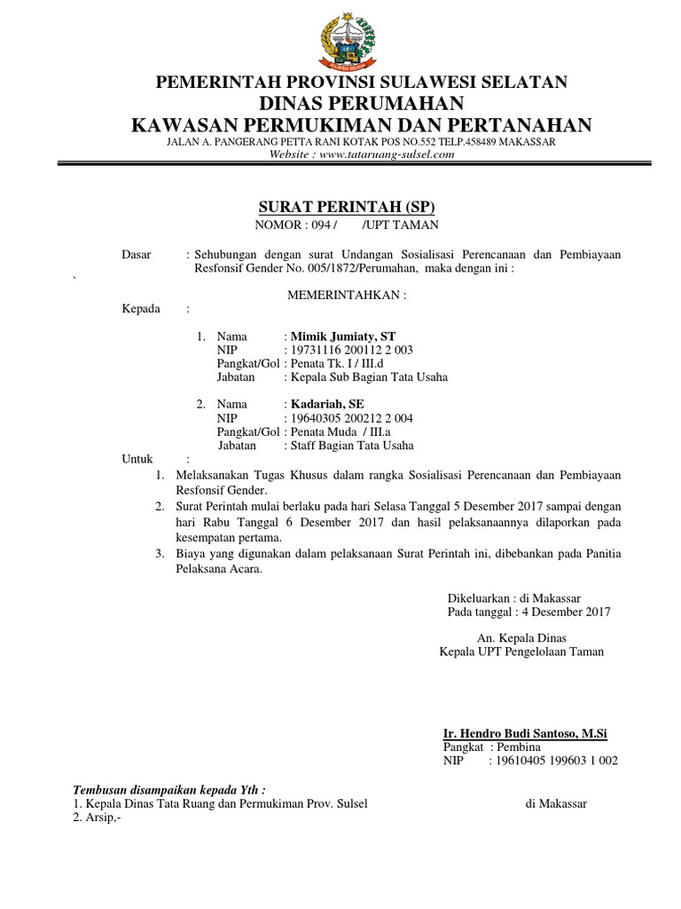 Surat Tugas Dinas Perumahan Kawasan Permukiman Dan Pertanahan