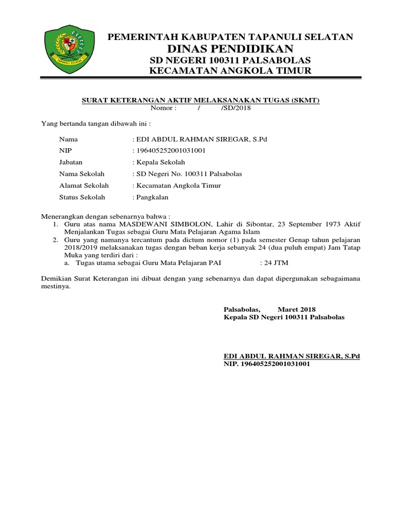 Contoh Surat Tugas Dinas Pendidikan Nusagates