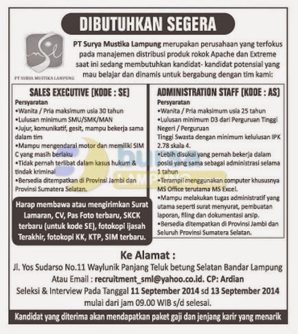Pt Surya Mustika Lampung Lowongan Kerja Terbaru Berita Viral Hari Ini Lowongan Kerja Hari Ini
