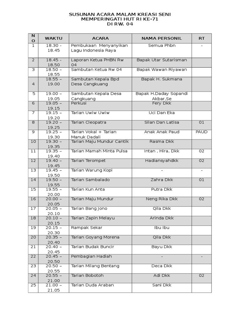 Contoh Susunan Acara Panggung Hut Ri 17 Agustus Shobatasmo