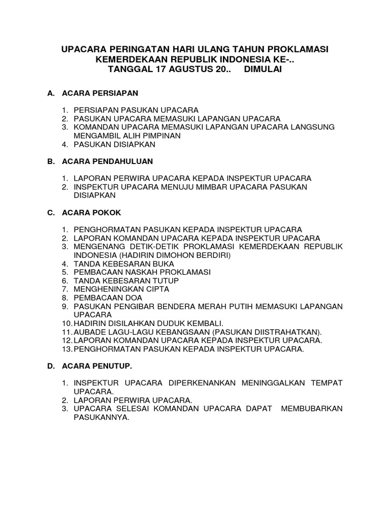 Contoh Susunan Acara Mc Upacara Hut Kemerdekaan Ri Dan Persiapannya Inirumahpintar Com