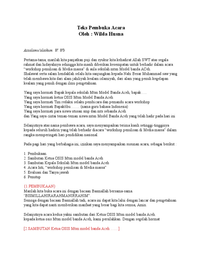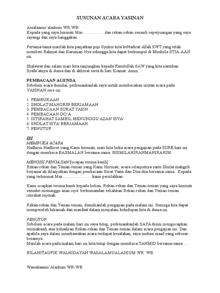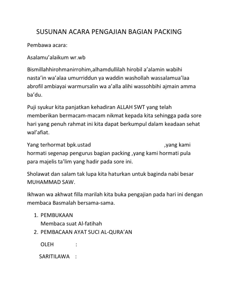 Contoh Text Mc Dan Susunan Acara Pengajian Terbaru Antapedia Com