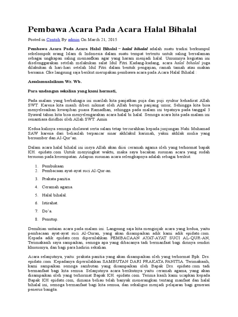 Susunan Acara Teks Mc Pengajian Halal Bihalal Maulid Nabi Bangmaul Com