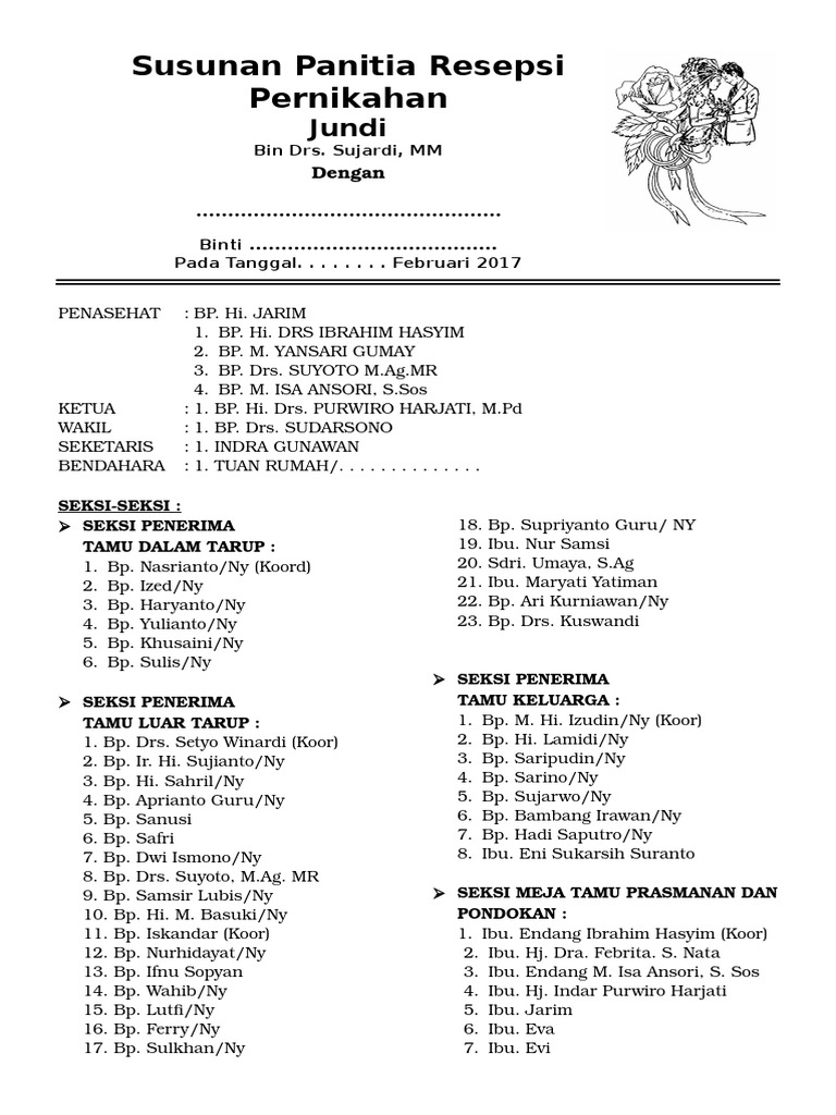 Download Pdf Susunan Panitia Resepsi Pernikahan Eg27zoz1g0l0