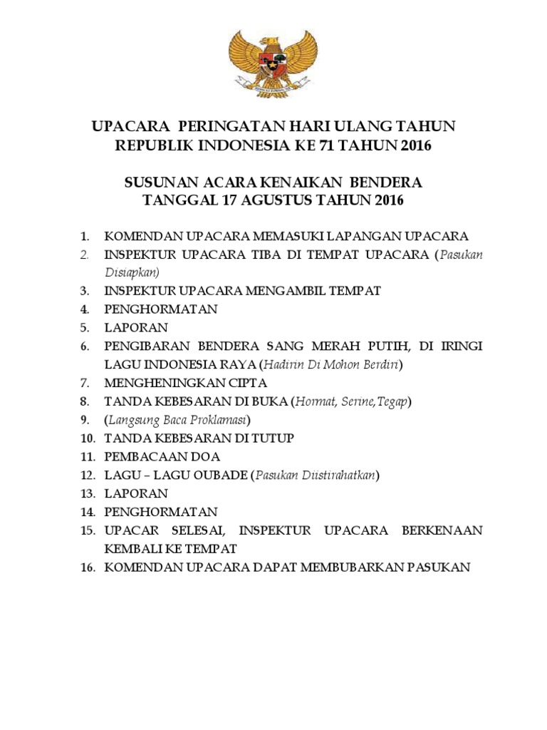 9 Agustus 2017 Susunan Acara Upacara Bendera Peringatan Hut Kemerdekaan Republik Indonesia Ke 72 Pdf Document