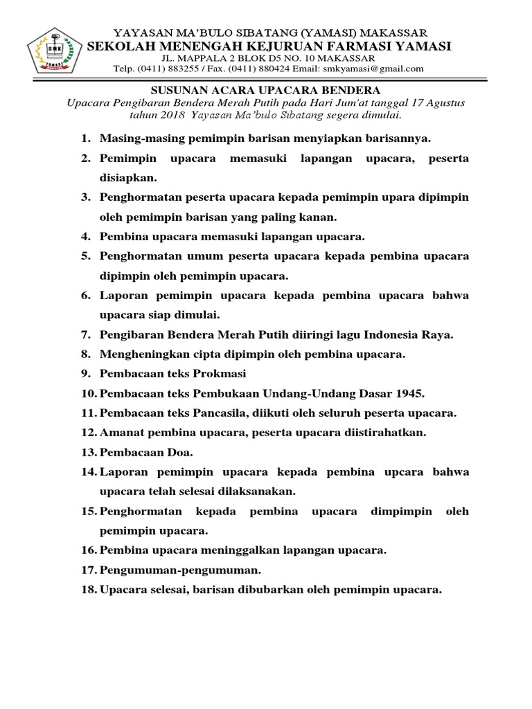 Contoh Susunan Acara Upacara Bendera The Leader S Bendera Teks Sekolah