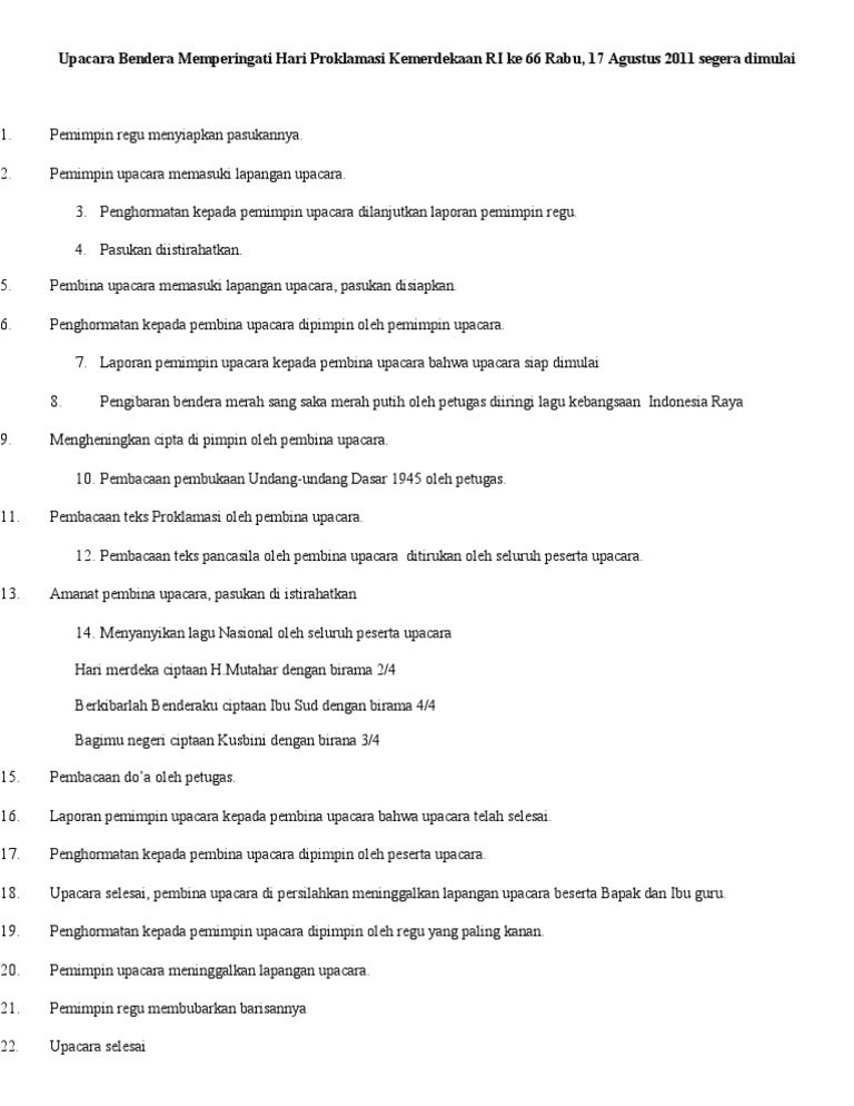 Susunan Upacara Bendera Hut Ri Ke 66 17 Agustus 2011 Docx Document