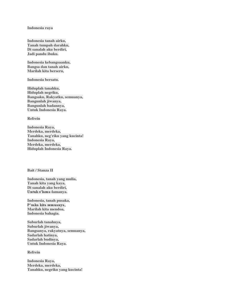 Lirik Lagu Indonesia Raya Teks Lagu Kebangsaan Indonesia