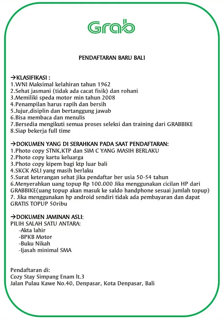 20 Syarat Daftar Grab Terbaru 2021 Offline Online Nasional