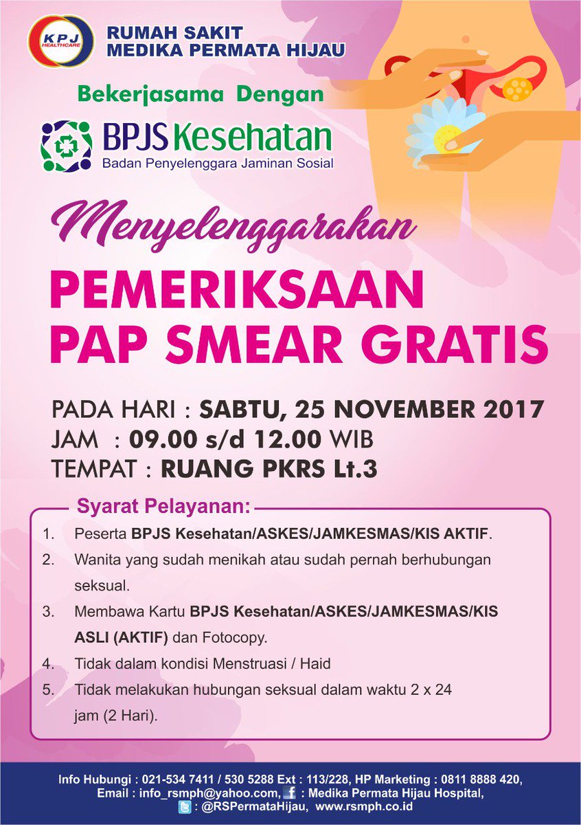 Rsmedikapermatahijau On Twitter Rumah Sakit Medika Permata Hijau Menyelenggarakan Pemeriksaan Pap Smear Gratis Pada Hari Sabtu 25 November 2017 Jam 09 00 12 00 Tempat Ruang Pkrs Lt 3 Rumah Sakit Medika Permata Hijau Https T Co Aklo8fpzw0
