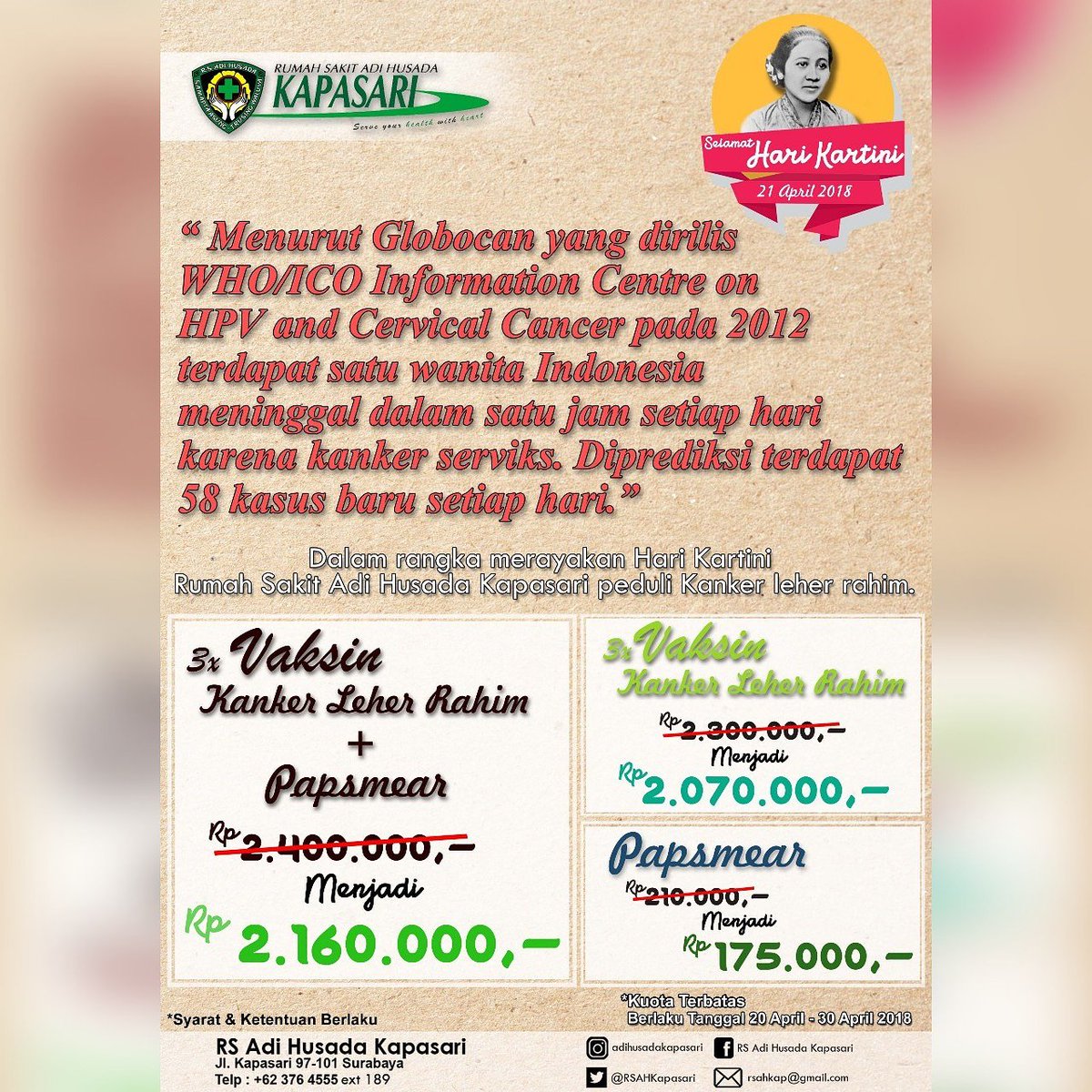 Rs Adi Husada Kapasari On Twitter Promo Hari Kartini Vaksin Kanker Serviks Pap Smear Dengan Harga Promo Yuk Buruan Daftar Waktu Kuota Terbatas Loh Hubungi Kami Telp 031 3764555 Ext 189 Promovaksin