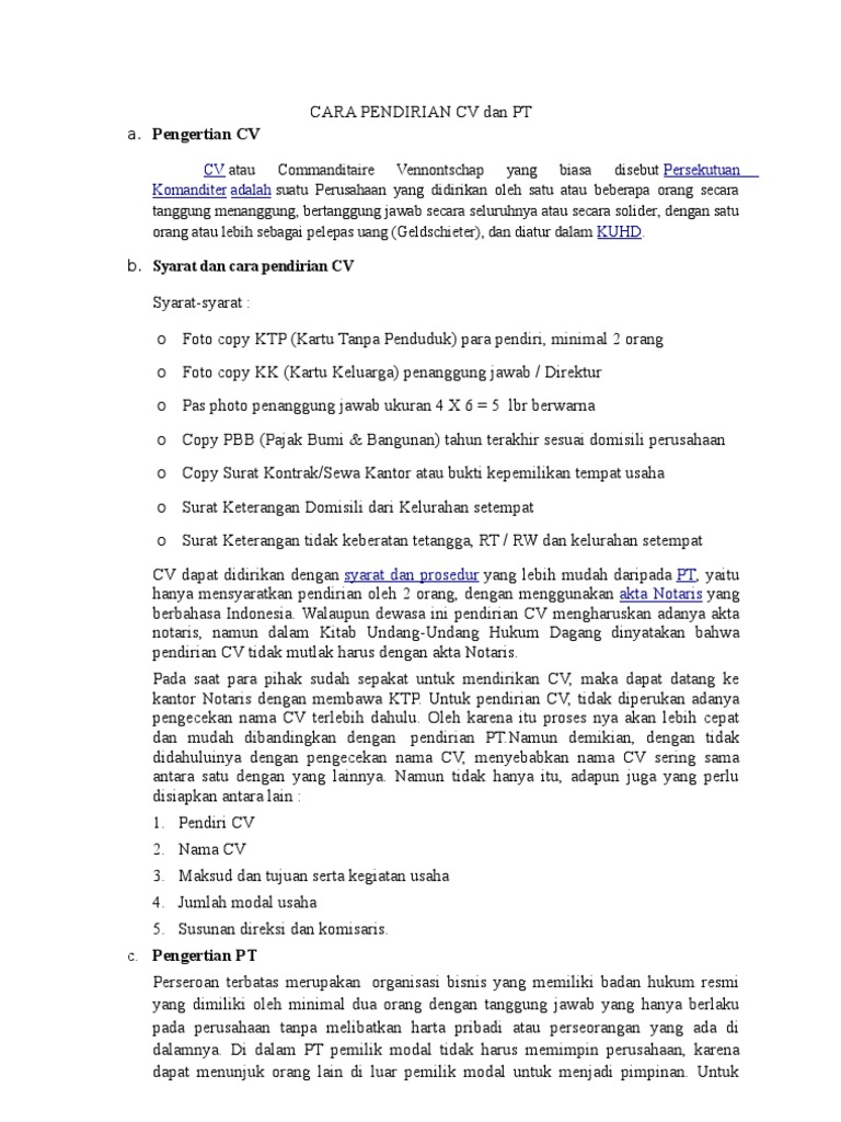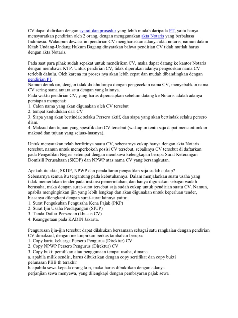 Syarat Pendirian Cv 2020 Terupdate Recommended