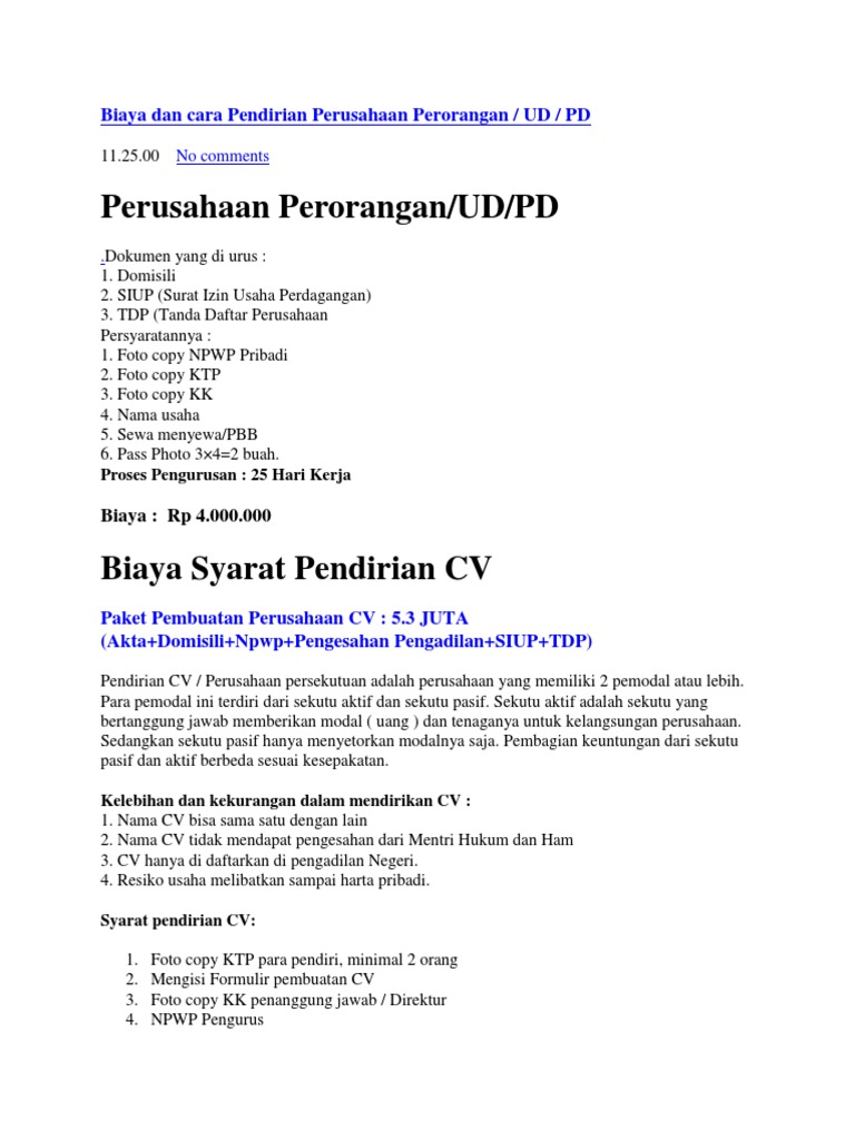 Syarat Dan Biaya Bikin Cv Murah Fildy Consultant Hub 081293228155