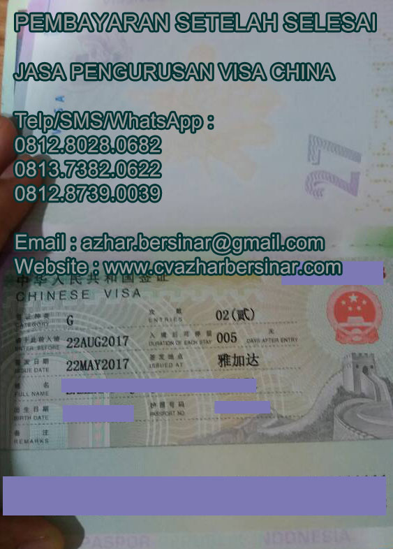 Jasa Pengurusan Visa Ke China 085281077379