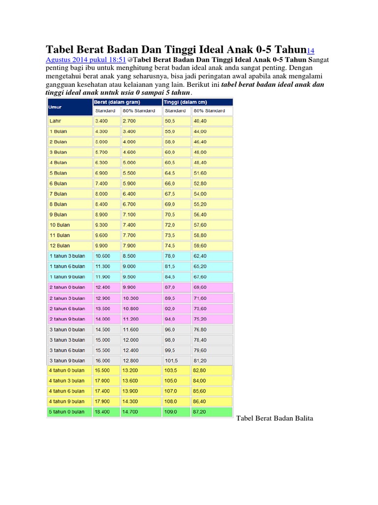 Download Tabel Berat Badan Ideal Anak Dan Tinggi Ideal Anak Untuk Usia 0 Sampai 5 Tahun Free Pdf Oiipdf Com