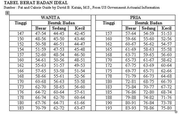 Lucu Tabel Berat Badan Ideal Sumber Fat And Calorie G By David B Katzin Ms From Us Govemment Actuarial Information Uide Wanita Pria Tinggi Tingg Bentuk Badan Bentuk Badan Besar Sedang Kecil