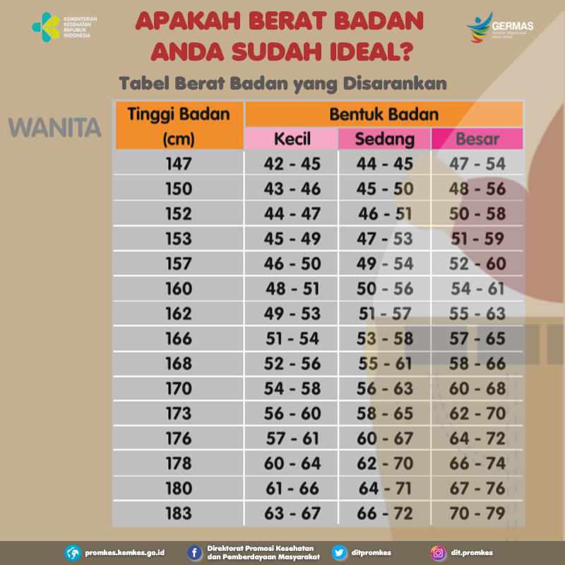 Direktorat Promkes Dan Pm Kemenkes Ri No Twitter Penyakit Tidak Menular Bisa Berawal Dari Obesitas Ayo Cek Berat Badan Ideal Kamu Lewat Tabel Berat Badan Yang Disarankan Berikut Germas Cegahobesitas Cegahptm Https T Co Akrjrxxwh0