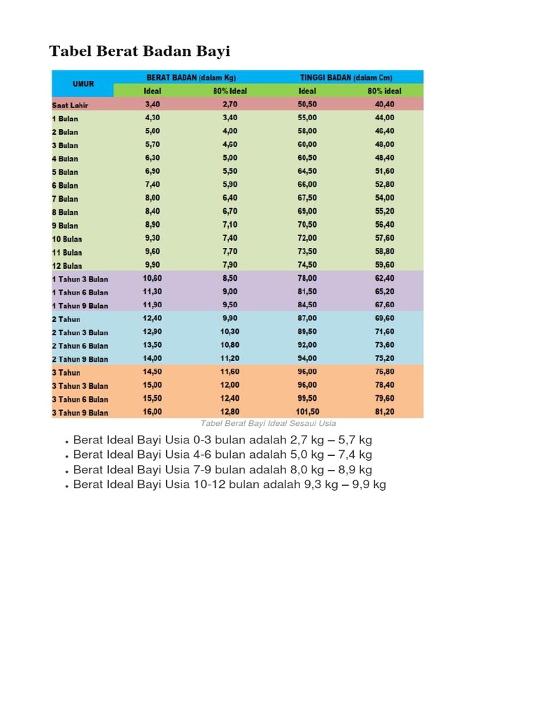 Tabel Berat Badan Ideal Bayi Sesuai Dengan Umur