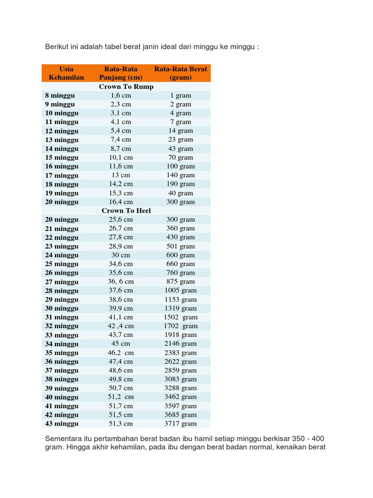 Share Tabel Berat Ideal Janin Ni Bund Ibuhamil Com