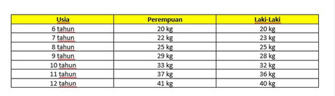 Tabel Berat Badan Anak Usia 6 12 Tahun Berbagai Tahun