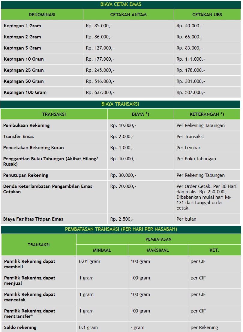 Biaya Ongkos Cetak Tabungan Emas Pegadaian 2019