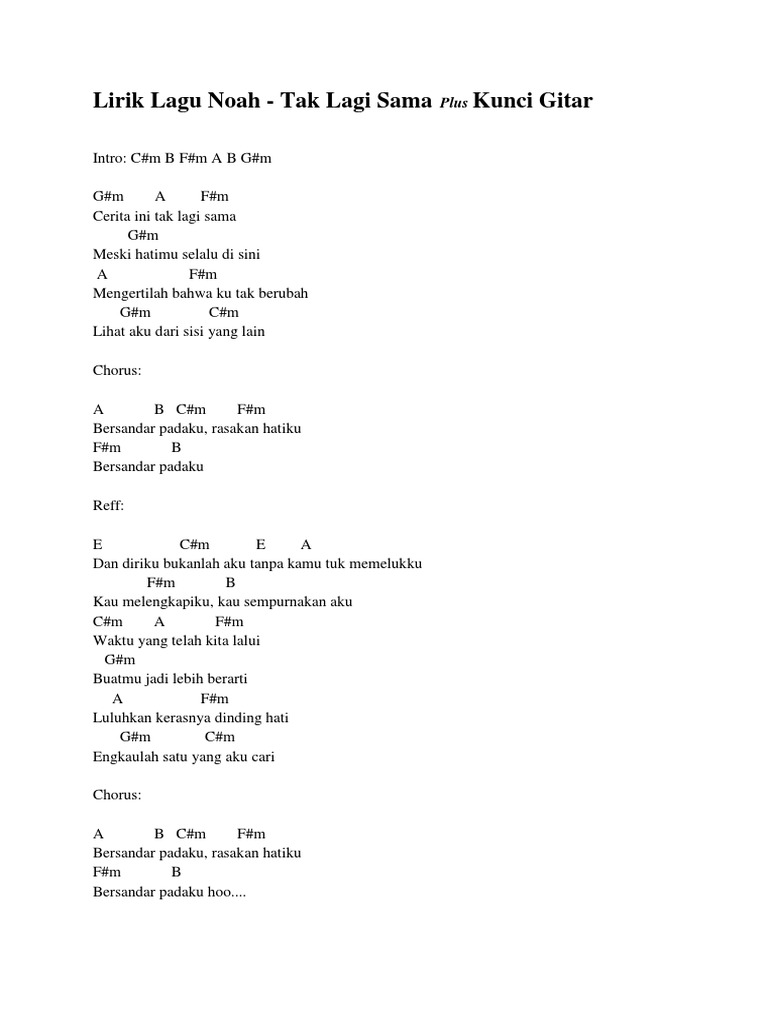 Lirik Dan Chord Lagu Tak Lagi Sama Dari Noah