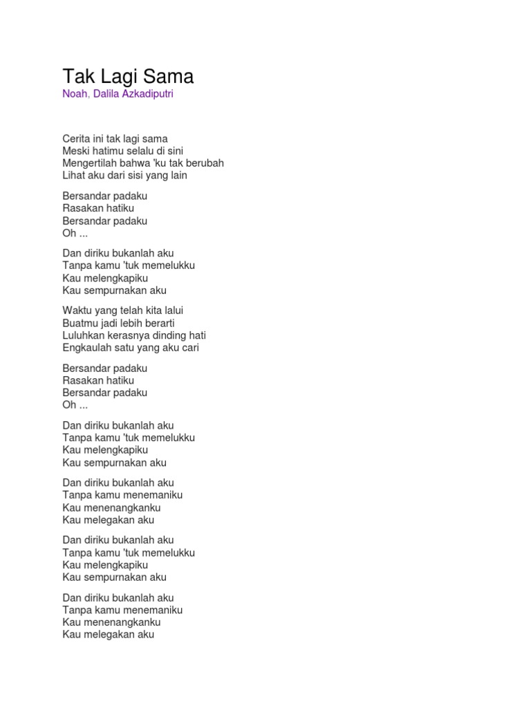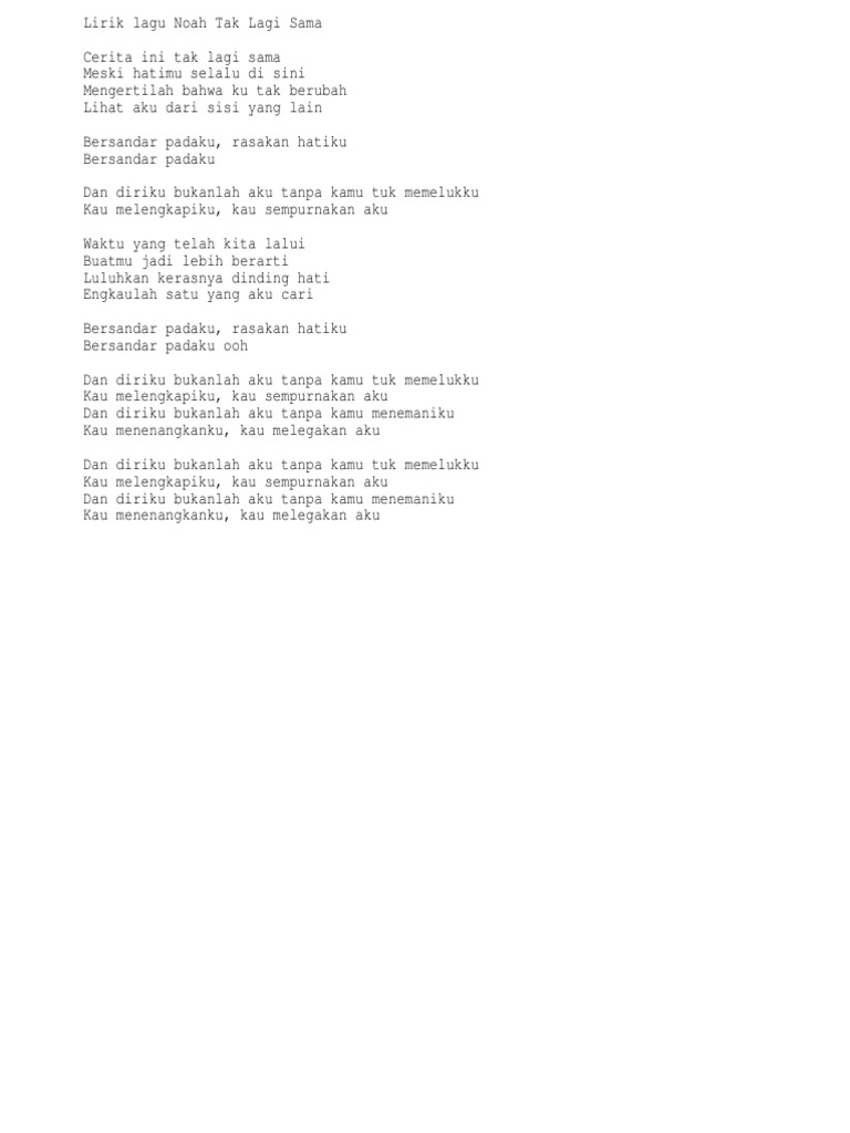 Lirik Lagu Tak Lagi Sama Yang Dipopulerkan Oleh Noah Band Sonora Id