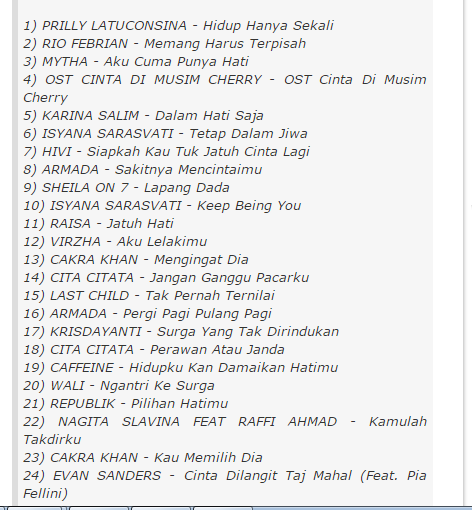 50 Top Chart Tangga Lagu Indonesia Terbaru Juni 2013