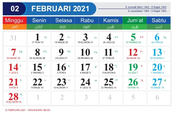 Kalender 2021 Indonesia Jawa Lengkap 12 Bulan